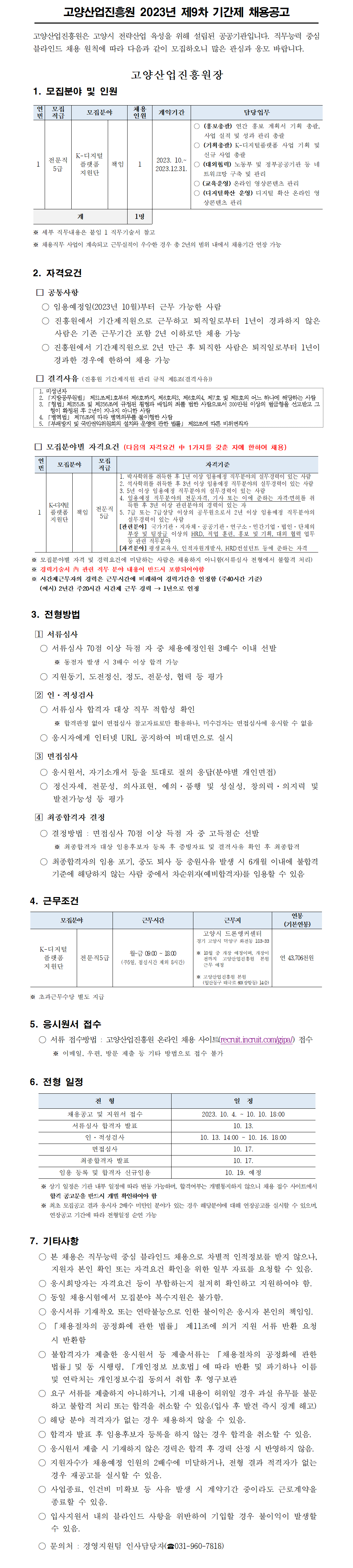[채용] 2023년 제9차(K-디지털플랫폼지원단) 기간제직원 채용 공고