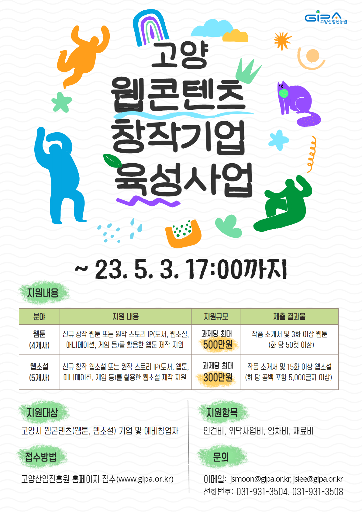 ■ 고양시 웹툰, 웹소설 기업 및 예비창업자 대상 5월 3일 17시까지 홈페이지 접수