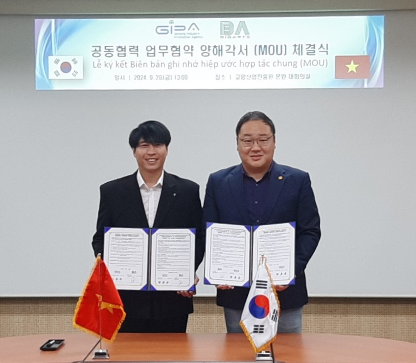 고양산업진흥원(원장 한동균)이 베트남 기업인 빅 아츠(BIG ARTS) 커뮤니케이션 &엔터테인먼트(대표 Chu Van Cuong, 이하 BIG ARTS 주식회사)와 지난 20일 공동협력 업무협약(MOU)을 체결했다.